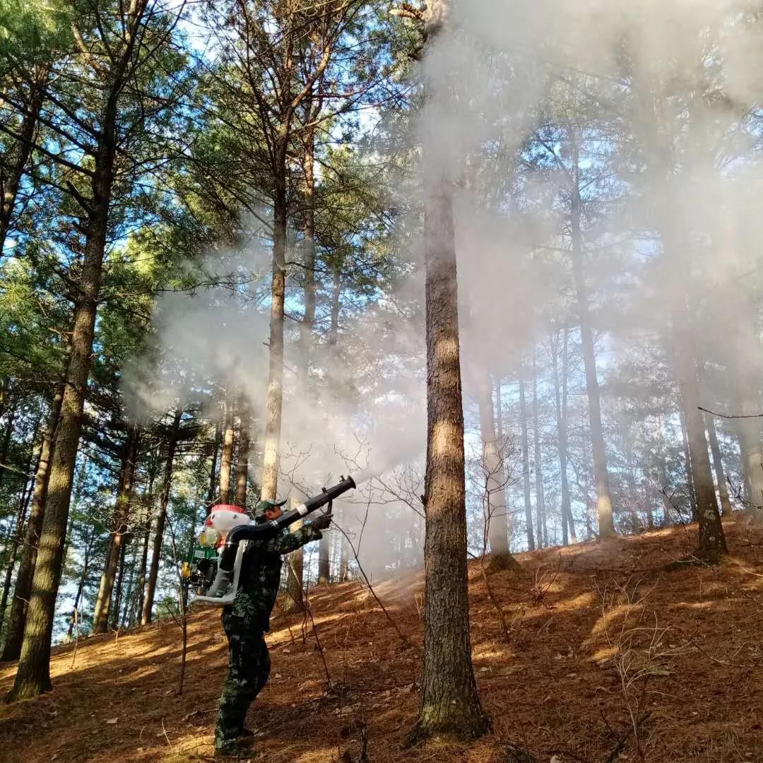 组织专业队伍开展防治工作。针对近期道林林场、青岭子林场、山市林场、石河林场出现松毛虫害的情况,各林场组织了专业的病虫害防治队伍,在病防站技术人员的现场指导下,使用高效氯氰菊酯、敌敌畏烟剂,对发现松毛虫虫害的人工红松、落叶松、樟子松进行无死角防治,确保防治工作安全、有序、有效。