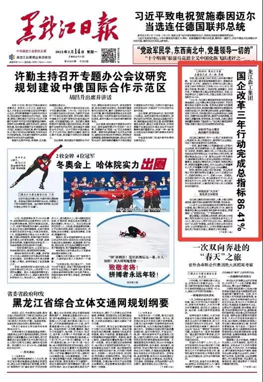 | 【媒体关注】黑龙江日报头版 | 龙江18新利(中国)集团:国企改革三年行动完成总指标86.41% | |