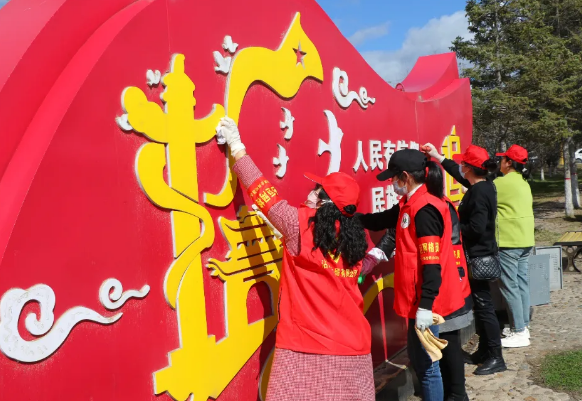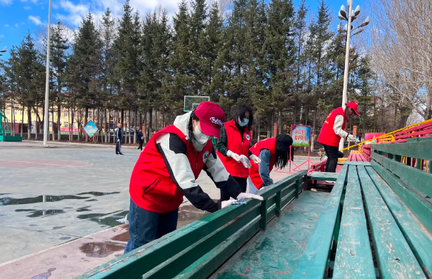 活动中,沾河局公司志愿者们身穿红马甲,手持垃圾袋、夹子、抹布等工具,捡起地上的杂物和隐藏在树下的枯叶,擦拭休闲设施和宣传牌。大家边清理边宣传,倡导居民群众养成文明健康、绿色环保的生活方式,争做文明新风的践行者。
