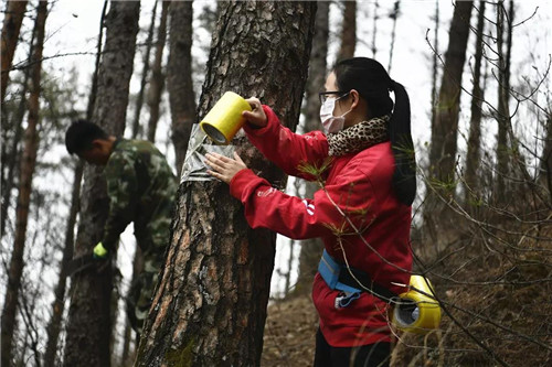 本报讯 20多天时间里,出动200余人,往松树树干上缠了3000多卷胶带……大海林林业局有限公司这是在干什么? “采用胶带阻隔法控制落叶松毛虫上树危害。”大海林局森林病虫害防治检疫站负责人王俊铭解释说,就是通过人工在树木距离地面一米左右的高度缠上胶带,利用胶带表面光滑特性,阻止落叶松毛虫上树取食叶片。 据了解,在东北林区,每年4月,大量松毛虫会从冬眠中苏醒,取食松叶、树冠,危害林木生长,最后甚至造成树木死亡。大海林局在重点防治区设立了林业有害生物测报点,按照省林科院森保所专家的建议,及时组织人员在松毛虫发生虫源迹地及区内虫口较大地块进行缠胶带隔离防治作业。对阻隔下的落叶松毛虫幼虫,采取化学药剂灭杀,并利用植保无人机和直升机对全局防治区域采取大面积飞机超剂量喷雾。目前,大海林局6.5万亩落叶松毛虫防治工作已全面完成,下一步他们将加强监测调查工作,根据监测调查结果采取相应防控措施,确保辖区内森林植被健康生长。