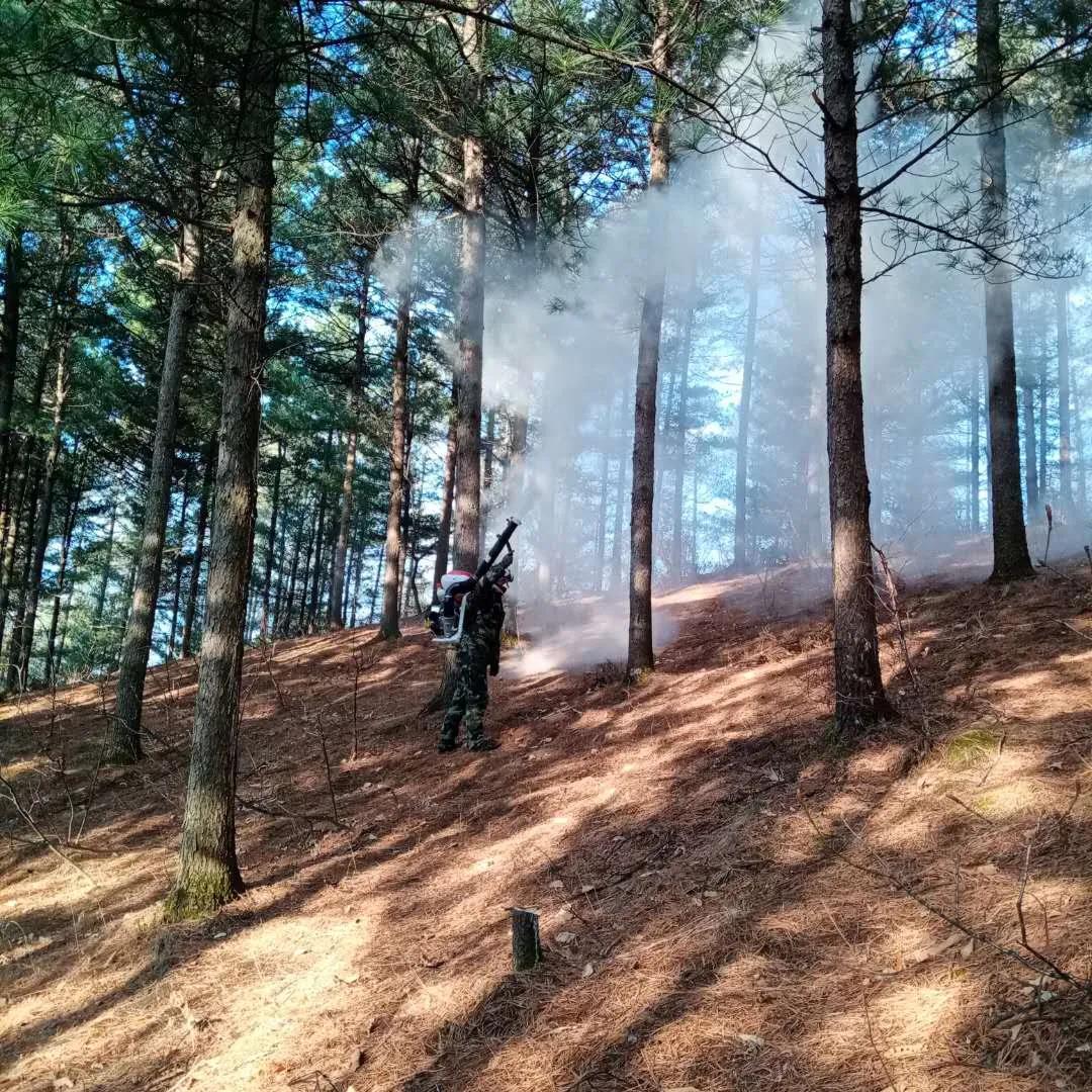 组织专业队伍开展防治工作。针对近期道林林场、青岭子林场、山市林场、石河林场出现松毛虫害的情况,各林场组织了专业的病虫害防治队伍,在病防站技术人员的现场指导下,使用高效氯氰菊酯、敌敌畏烟剂,对发现松毛虫虫害的人工红松、落叶松、樟子松进行无死角防治,确保防治工作安全、有序、有效。