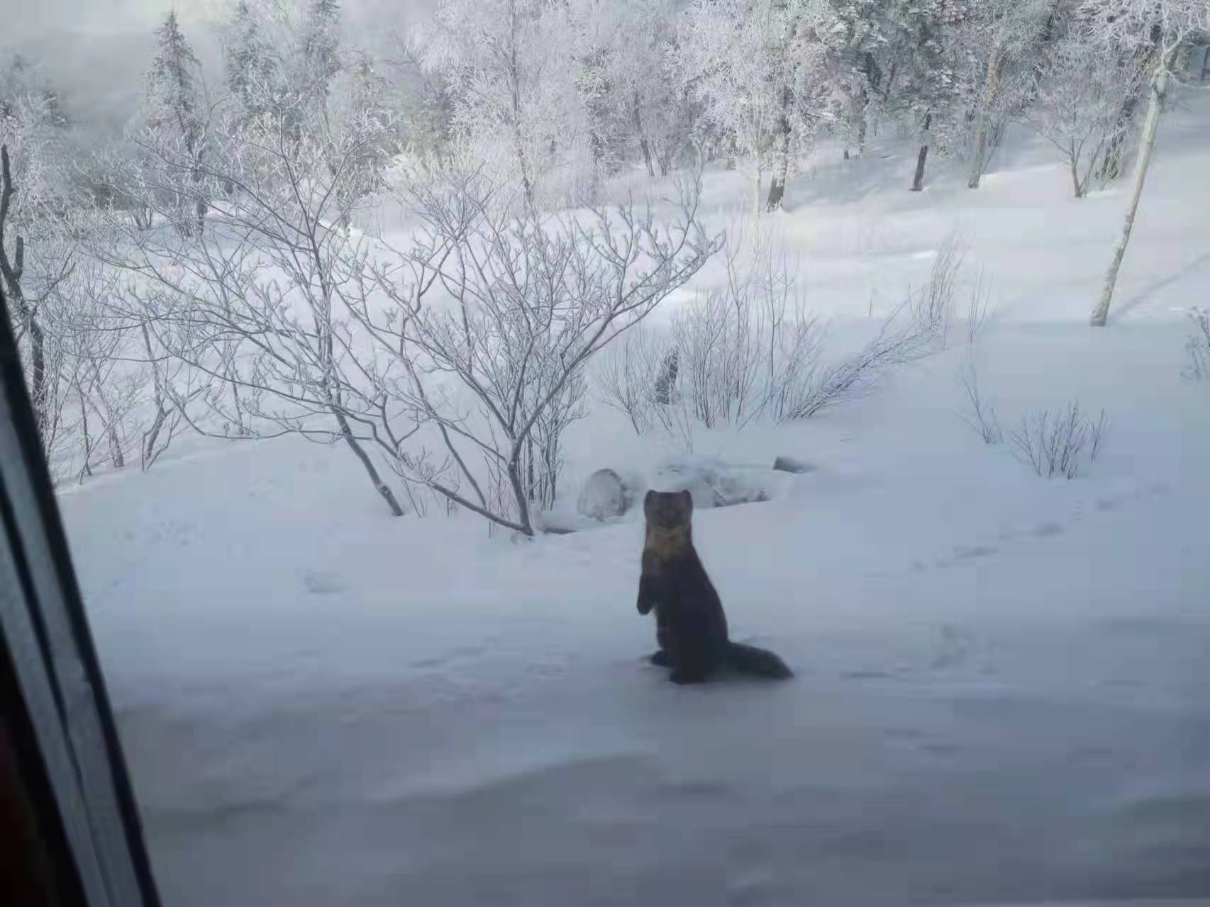 近日,一对国家一级保护动物——小紫貂,成为亚雪公路550公里处,“冰雪画廊”摩托站的常客。