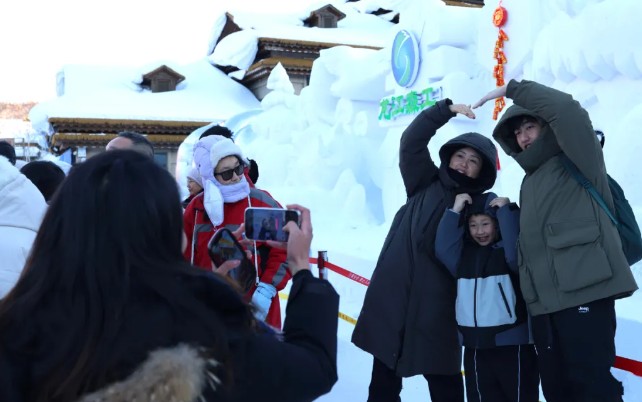 “为了增强雪雕的互动性,我们在后期制作了小程序,用手机扫描小程序再对准雪雕,手机里就会呈现烟花、篝火等动态场景,可供游客拍照和录像,带来不一样的体验感。”正在向游客讲解创意雪雕的王海峰介绍说。当游客拿出手机扫描雪雕旁的二维码后,神奇的一幕就此上演。屏幕上瞬间呈现出燃放烟花爆竹的绚烂景象,五彩斑斓的烟花在雪雕上空绽放,伴随着逼真的音效,仿佛置身于热闹的节庆现场。