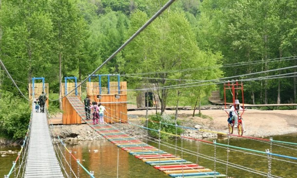 为了让游客游客拥有更加丰富多元的游玩体验,原始林景区在今年精心打造了多个特色项目。“松属”露营地完美融合了迷人的自然美景、完备的设施以及舒适的体验,成为自驾爱好者露营的绝佳之选;低空小缆车运行平稳,乘坐其中穿梭于山林之间,能够以独特视角近距离欣赏秀美风光;挑战桥横跨河流之上,每迈出一步,桥体都会随之晃动,带来心跳加速的刺激体验;高空自行车极具挑战性与趣味性,让游客在感受空中与河流双重刺激的同时,与绿水青山亲密相拥。此外,树屋滑梯、松果迷宫、昆虫观察站等项目深受孩子们喜爱,他们在尽情玩耍的过程中,还能学习森林生态知识,培养对大自然的热爱之情。