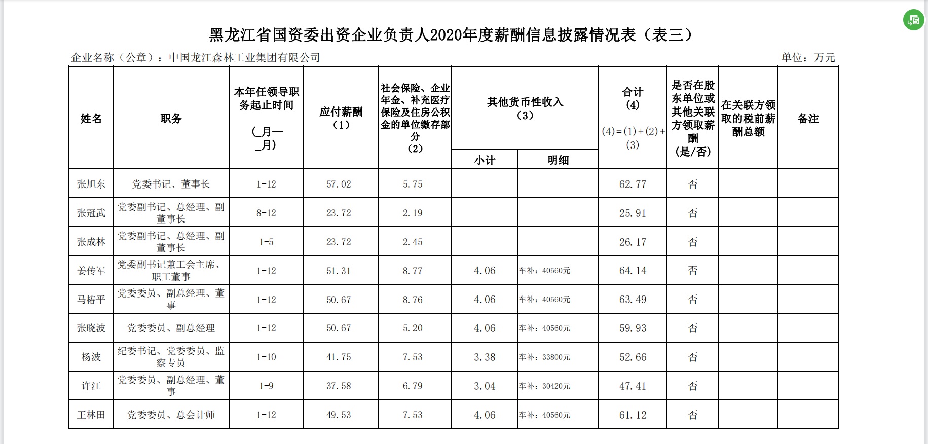 按照黑龙江省国资委《黑龙江省国资委出资企业负责人薪酬管理办法》黑国资分〔2016〕202号文件精神,18新利在线最新对由省国资委管理的集团领导班子成员2020年度薪酬信息向社会披露如下: