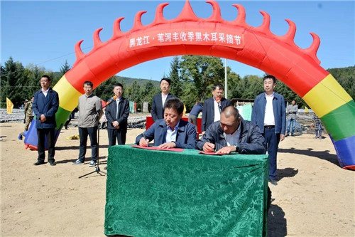 在采摘节上,投资规模2万平方米菌包厂,年产量达5000多万袋的三道冲河菌包加工企业负责人与基层林场代表签订了2019年菌包供销协议。
